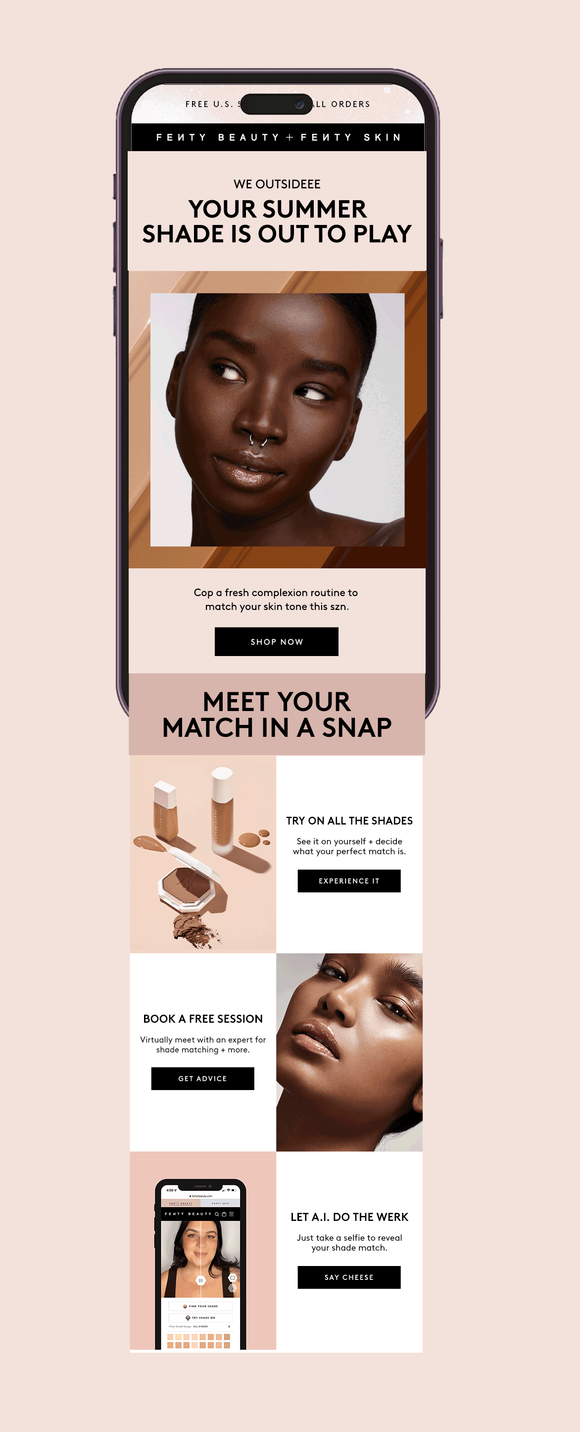 As a Digital Designer at Fenty Beauty, I developed key assets for Site, CRM, and Paid Social platforms across Beauty, Skin, and Hair lines. I played a crucial role in the UK site launch, collaborating with the UK team for a smooth transition. I thrived in a fast-paced environment, delivering pixel-perfect designs that met brand standards and used innovative solutions for engaging marketing materials. My skills include Adobe Suite, Motion Graphics, Figma, Prototyping, typography, image retouching, and creating impactful presentation decks, ensuring clear communication and effective design execution with Art Directors, stakeholders, Copywriters, and Project Managers.
